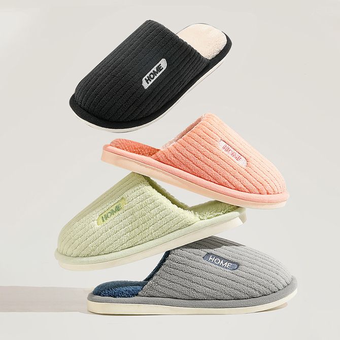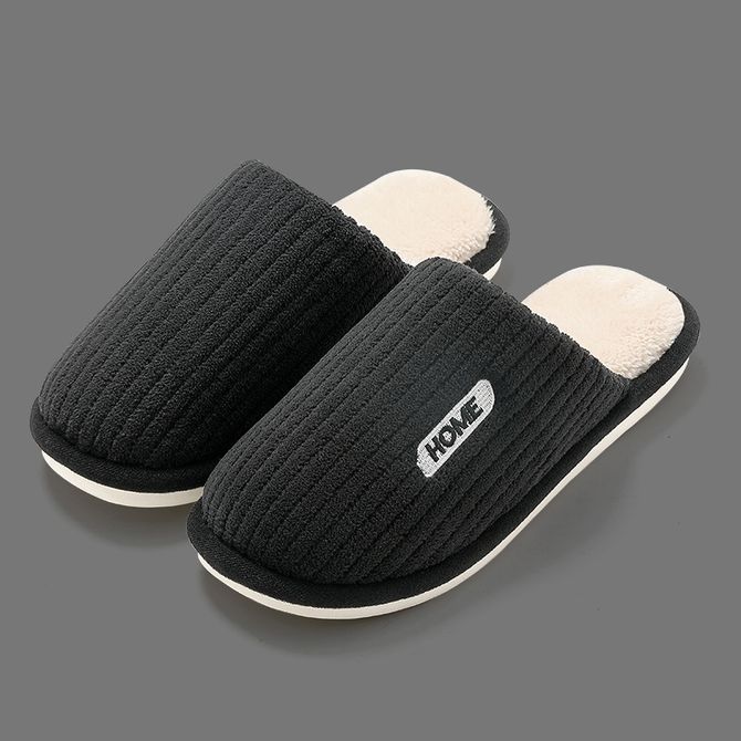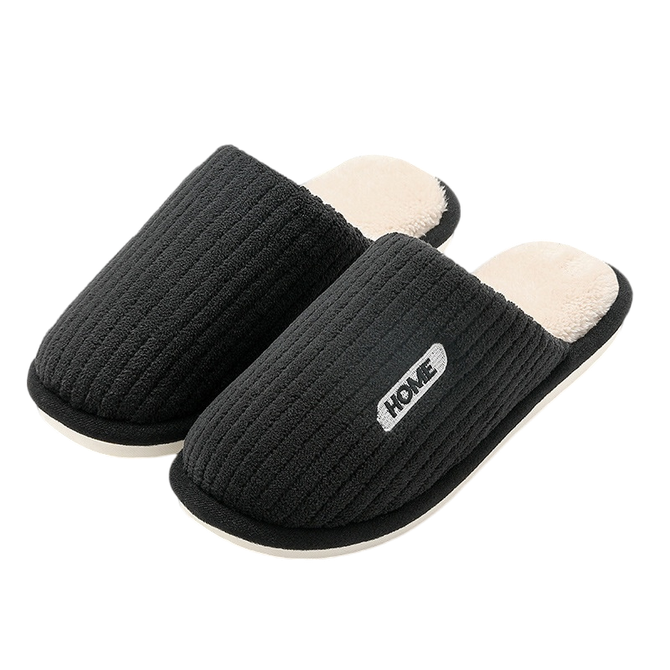 凯诗风尚 简约条纹家居拖鞋秋冬保暖家居鞋纯色男女室内棉拖鞋黑色