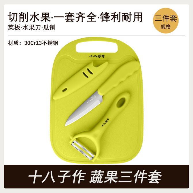 十八子作 蔬果三件套 菜板+水果刀+瓜刨 厨房多用果蔬刀具组合SC058 切削果蔬,一套齐全 兑换价格 1300 里程 会员卡别 终身白金卡 白金卡 金卡 银卡 普通卡 儿童卡 服务 由 卓鹏商贸生活馆 发货并提供售后 颜色: 其他 购买数量: 件 库存件 配送地址: 立即购买 加入购物车 成功添加到购物车 关闭 购物车共有 种商品 总金额为: 组合销售 产品介绍 产品规格 售后服务 产品咨询 发现好货 张小泉 不锈钢折叠便携水果刀精磨刃口SK-2 1100 里程 愉家菜刀专用快速磨刀器 家用三段精磨口多功能磨刀石K133 1100 里程 苏泊尔supor 厨房刀具不锈钢套装 尖峰系列7件套刀.TK1520Q 14800 里程 双立人(ZWILLING) 水果刀削皮刀刮皮刀家用小刀多功能蔬果刀刀具Enjoy厨刀8cm 3300 里程 张小泉 玲珑系列不锈钢水果刀D20794000 1100 里程