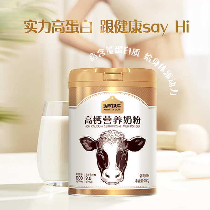认养一头牛ADOPT A COW 高钙营养奶粉700g*1罐 高膳食纤维 兑换价格 3500 里程 会员卡别 终身白金卡 白金卡 金卡 银卡 普通卡 儿童卡 服务 由 致良优选 发货并提供售后 规格: 罐装 购买数量: 件 库存件 配送地址: 立即购买 加入购物车 成功添加到购物车 关闭 购物车共有 种商品 总金额为: 组合销售 产品介绍 产品规格 售后服务 产品咨询 发现好货 蒙牛 铂金装 中老年奶粉400g 益生菌高钙富硒成人奶粉 便捷条装 1400 里程 蒙牛 铂金装中老年益生菌高钙富硒成人奶粉800g罐装0蔗糖营养送礼 2800 里程 蒙牛 中老年高钙低脂成人奶粉800g罐装 2400 里程 蒙牛 悠瑞 金装中老年奶粉400g 高钙富硒成人奶粉 营养冲饮 1400 里程 蒙牛 中老年低脂高钙高纤奶粉800g/罐 2500 里程