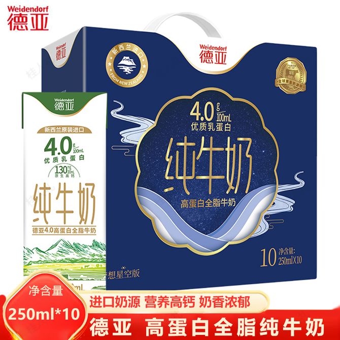 德亚 新西兰进口4.0g高蛋白高钙纯牛奶250ml*10盒(梦想星空版)甄选优质奶源 滴滴醇香 学生老人早餐牛奶 礼盒装