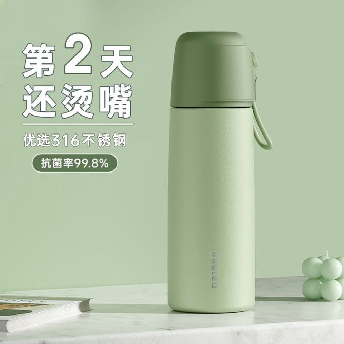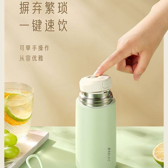 (详情图片共用-清新绿)一键开盖 不锈钢 一杯双饮 长效锁温