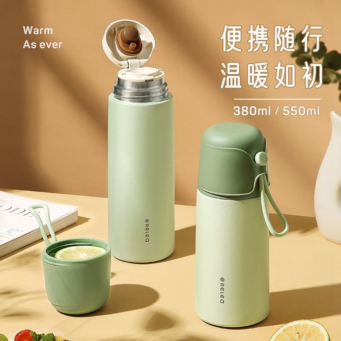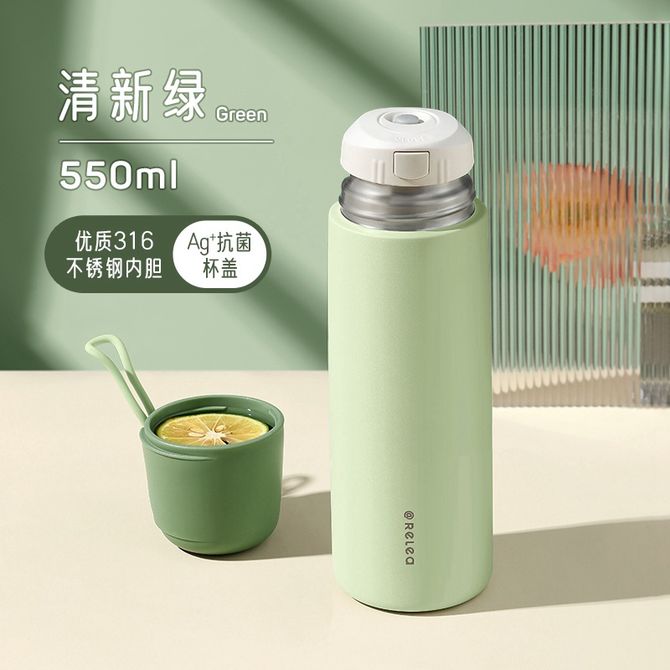 物生物(RELEA) 保温杯316L不锈钢高颜值茶杯550ML车载户外便携水杯-清新绿JV012240-0550-VS