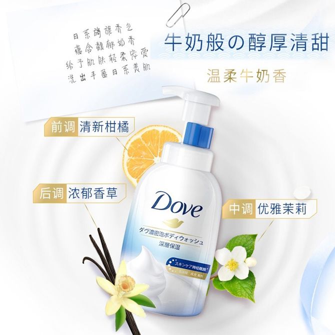 多芬/Dove 深层营润浓密沐浴泡泡400ml瓶装 深层洁净滋润保湿舒缓 清甜奶香款