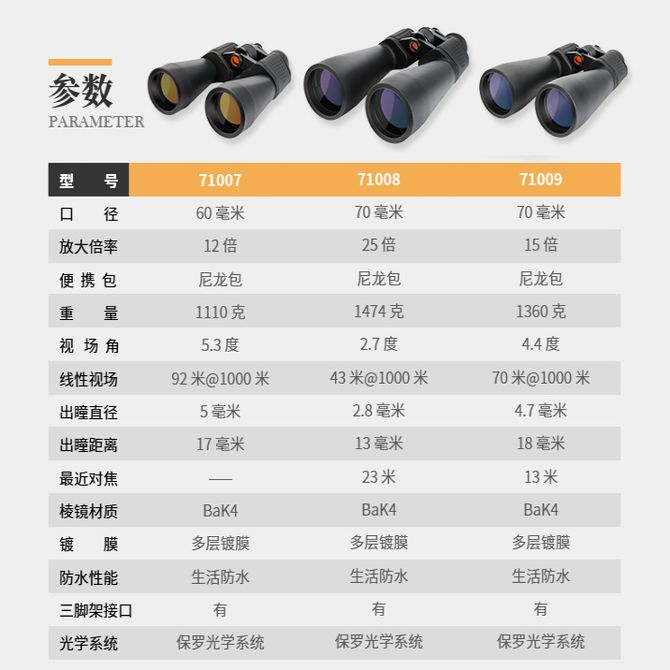 星特朗天神系列双筒望远镜PRO可接寻星镜15X70