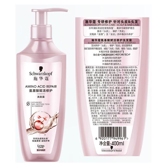 施华蔻 洗发露400ml 氨基酸赋活修护洗发露无硅油洗发水改善毛躁新老包装