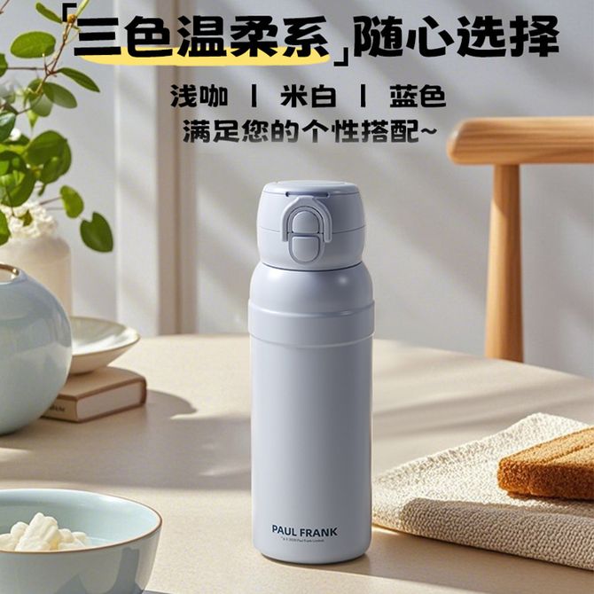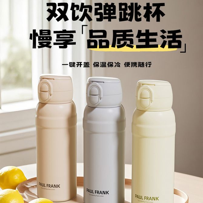 大嘴猴/PaulFrank 双饮弹跳530ml容量不锈钢保温杯便携式吸管饮水杯-PFC925-530(棕)