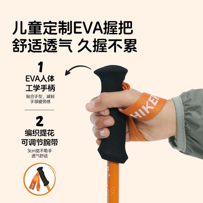 伯希和 户外儿童登山杖 伸缩徒步杖防滑超轻爬山装备 烟绿色(51-100)
