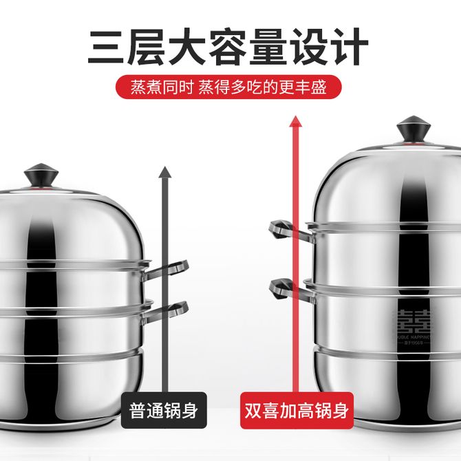 双喜 三层蒸锅不挑灶具带蒸笼明火电磁炉通用蒸锅304不锈钢 中 【该产品为单款直径30cm,详情共用】可视锅盖,多灶通用,手柄隔热设计 兑换价格 8700 里程 会员卡别 终身白金卡 白金卡 金卡 银卡 普通卡 儿童卡 服务 由 广西桂雅文化传媒有限公司 发货并提供售后 颜色: 其他 购买数量: 件 库存件 配送地址: 立即购买 加入购物车 成功添加到购物车 关闭 购物车共有 种商品 总金额为: