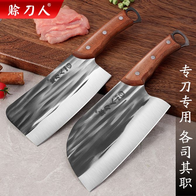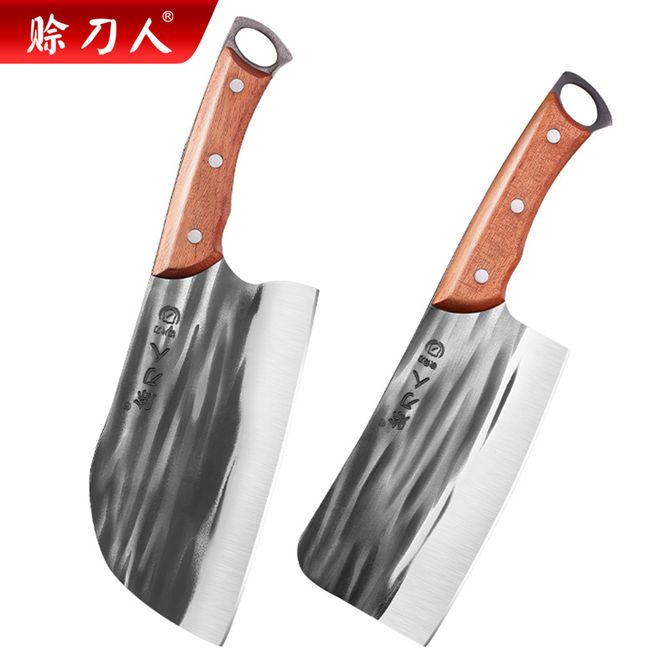 甄选优质钢材 双刀双用 锻打锤纹 沙比利木手柄 手工湿式开刃 不易生锈