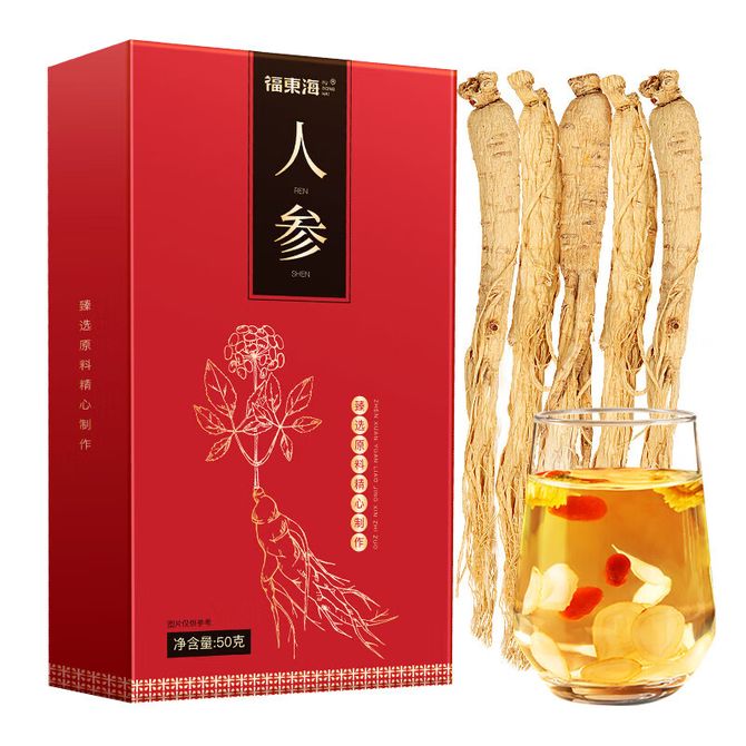 福东海 人参50克 精选长白山人参生晒参 煲汤滋补酒药材
