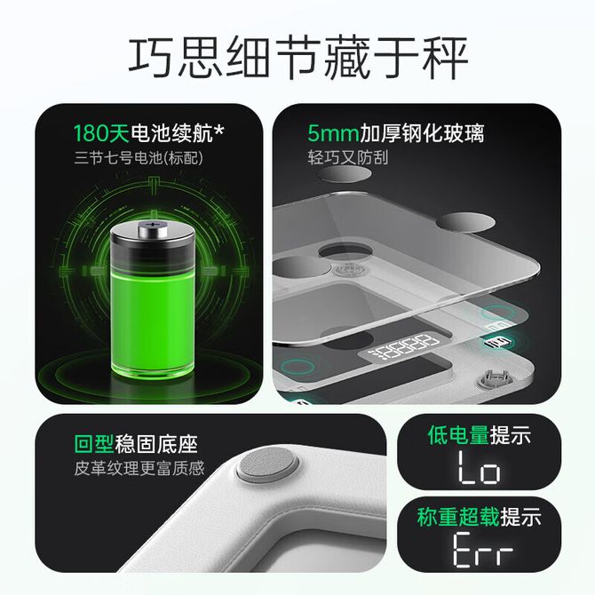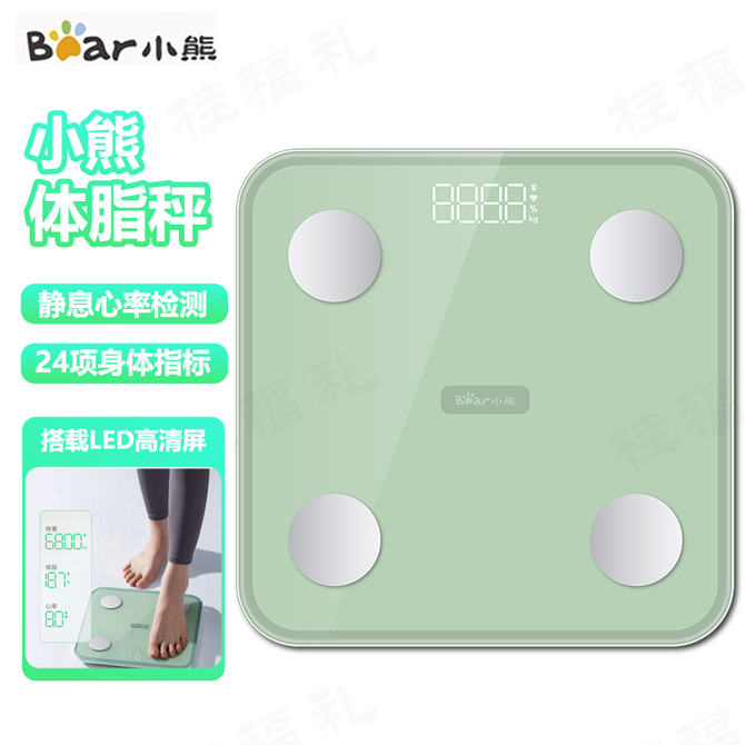 小熊/Bear 电子秤体重秤人体家用运动健身专用一体高精准称重秤无线蓝牙绿色