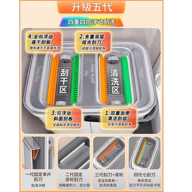 佳帮手拖把升级五代四系统33cm+4块原装布