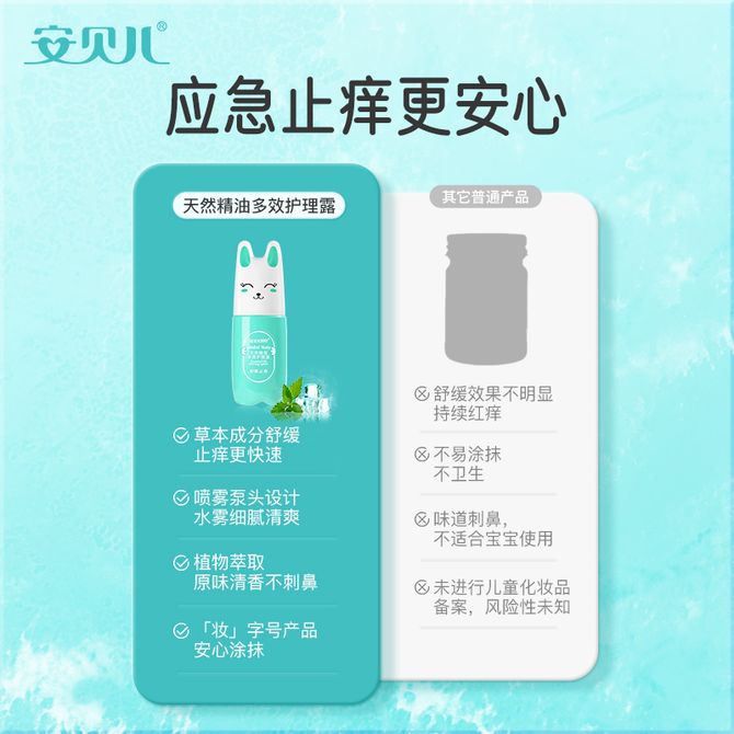 安贝儿 天然精油多效护理露60ml 天然精油防护止痒金露儿童户外宝宝叮咬多效护理露走珠喷雾 【卡通兔】防护止痒喷雾60ml 兑换价格 1500 里程 会员卡别 终身白金卡 白金卡 金卡 银卡 普通卡 儿童卡 服务 由 金杉锦锋母婴用品超市 发货并提供售后 洗护容量: 60g 购买数量: 件 库存件 配送地址: 立即购买 加入购物车 成功添加到购物车 关闭 购物车共有 种商品 总金额为: