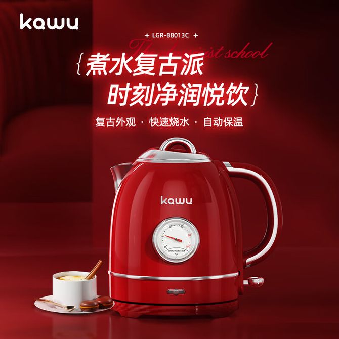 卡屋/KAWU 电热水壶 1.3L复古外观304不锈钢电水壶 烧水壶分离式壶盖 LGR-B8013C