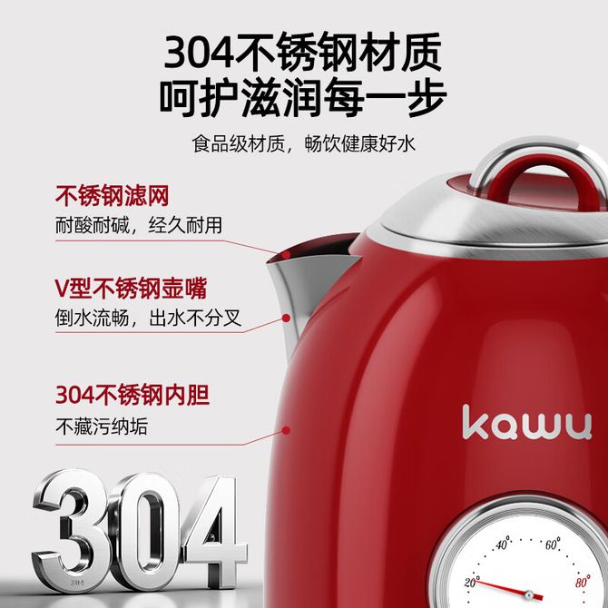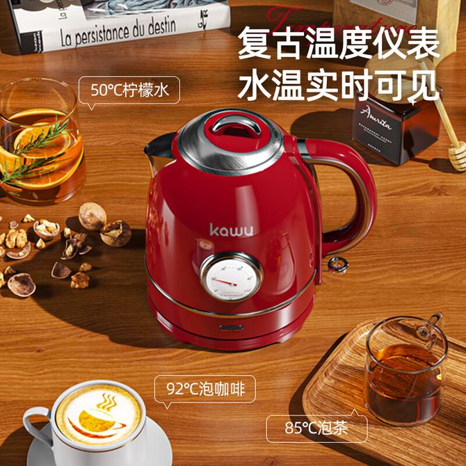 304不锈钢内胆;复古温度仪表水温实时可见;自动保温;