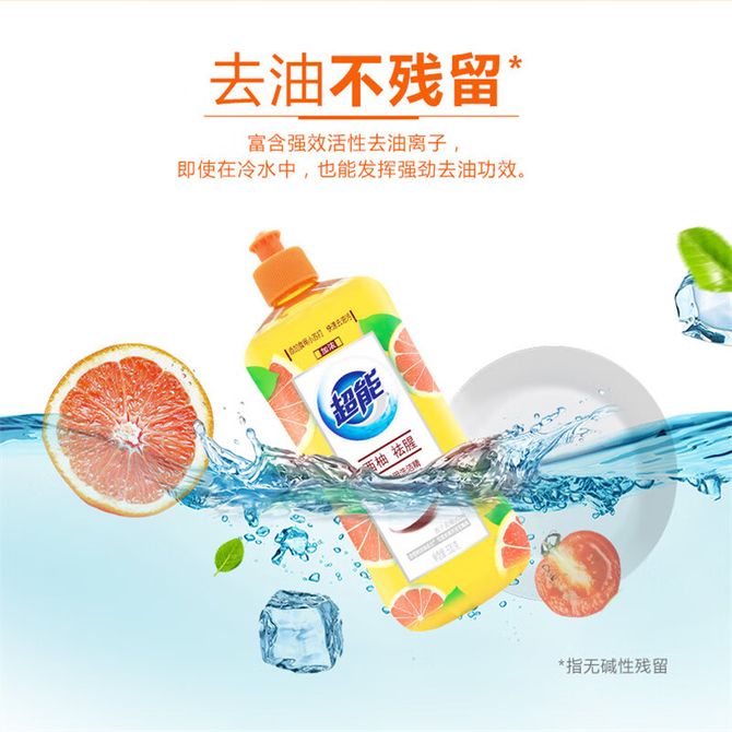 超能 洗洁精500g(2瓶装) 西柚祛腥即使在冷水中,也能发挥强劲去油功效。