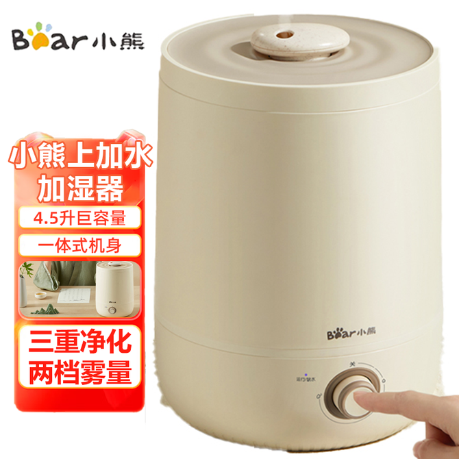 小熊/Bear 上加水加湿器 4.5升大容量卧室办公室空调房增湿器 银离子抑菌水箱安全健康