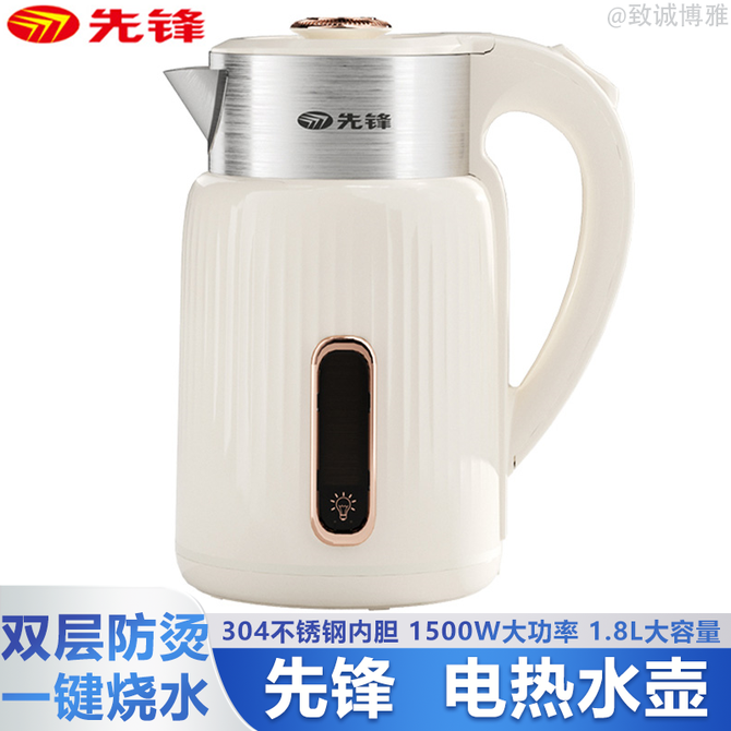 先锋 电热水壶1.8L容量热水壶304不锈钢材质内胆双层防烫一键烧水开水壶热水壶 双层防烫 一键烧水 304不锈钢内胆 1500W大功率 1.8L大容量 兑换价格 2600 里程 会员卡别 终身白金卡 白金卡 金卡 银卡 普通卡 儿童卡 服务 由 北京致诚博雅贸易有限公司 发货并提供售后 颜色: 其他 购买数量: 件 库存件 配送地址: 立即购买 加入购物车 成功添加到购物车 关闭 购物车共有 种商品 总金额为: 组合销售 产品介绍 产品规格 售后服务 产品咨询 发现好货 苏泊尔(SUPOR)电水壶 1.7L 不锈钢/YL SW-17S13A 5700 里程 志高/Chigo 电水壶烧水壶1.8L大容量电热水壶双层防烫自动断电家用烧水开水壶不锈钢 电水壶 DC-A18F 1900 里程 美的/Midea 电热水壶家用大容量烧水壶热水壶双层防烫电水壶304不锈钢内胆自动断电分离式拔盖 MK-SH15X1-102 3000 里程 小熊/Bear 电水壶家用烧水壶 不锈钢自动断电恒温热水壶保温一体电热水壶1.5L容量 3500 里程 小熊/Bear 烧水壶电水壶热水壶电热水壶开水壶304不锈钢内胆双层防烫1.5L大容量ZDH-Q15U8 3000 里程