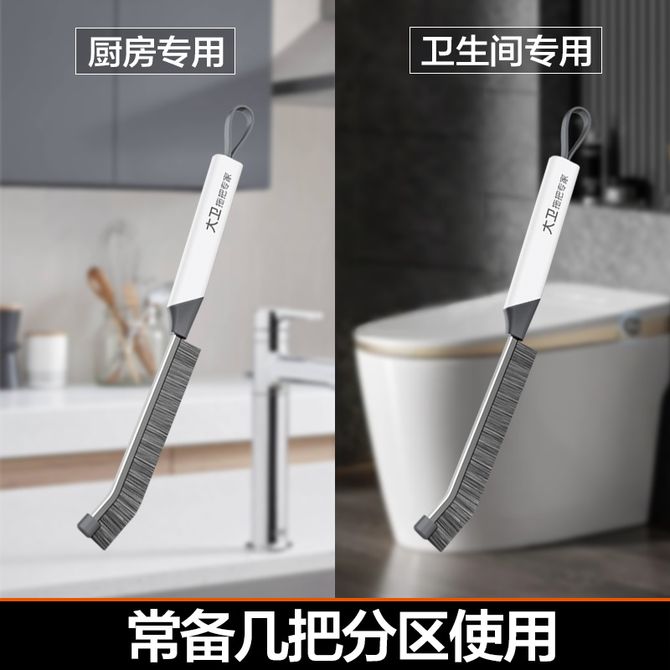 大卫 多功能卫生间长柄缝隙刷子死角硬毛浴室厨房洗手间用刷马桶 长条缝隙刷-2个装S13
