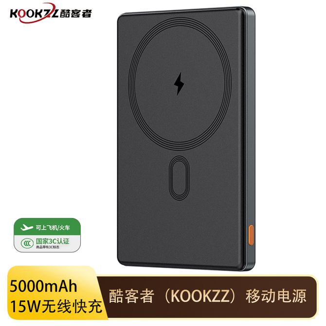 KOOKZZ 【国家3C认证】5000mAh超薄强磁吸移动电源充电宝20W有线快充双向快充 DY21灰色