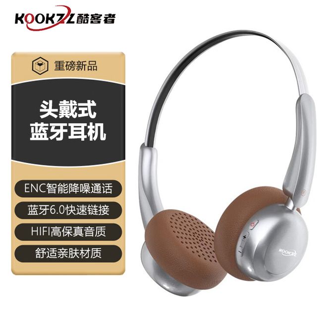 KOOKZZ 专业电竞头戴式蓝牙耳机高音质复古式蓝牙耳机超长续航无线设计时尚单品 R15银色