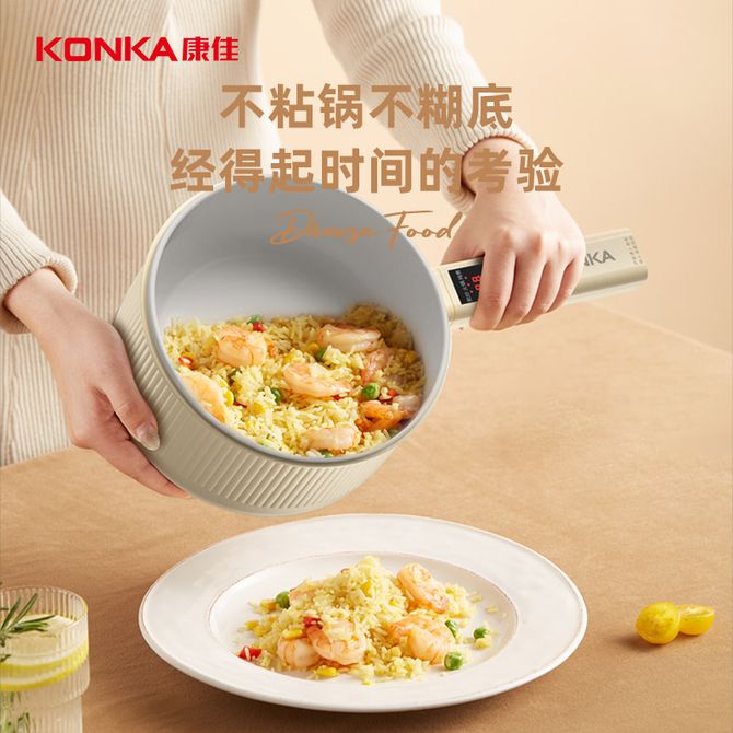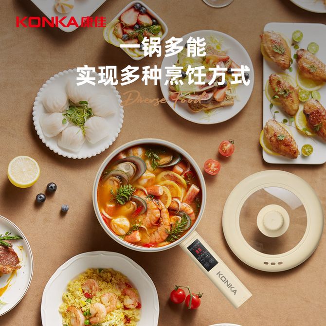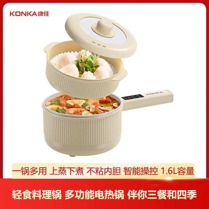 康佳/Konka 家用电煮锅智能操控 多功能电热锅 1.6L容量上蒸下煮泡面火锅小电锅电蒸锅