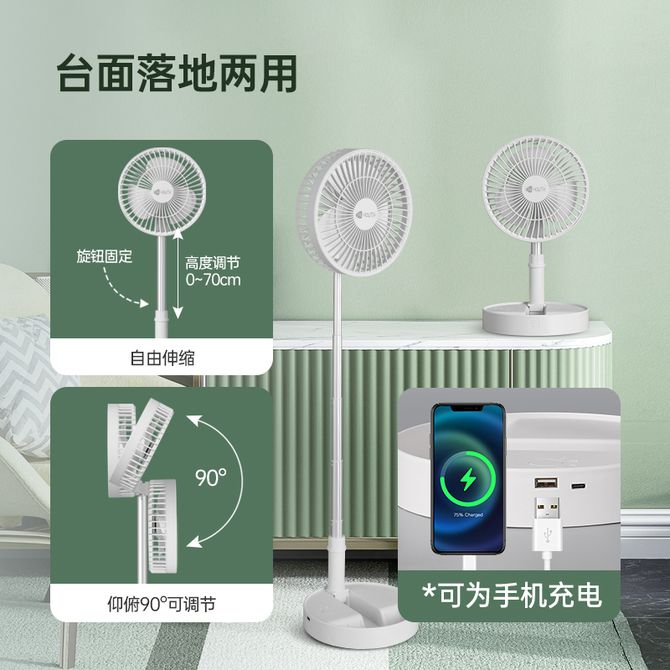 收纳式 折叠电风扇 三档风速 折叠伸缩 小巧便携 多样化供电