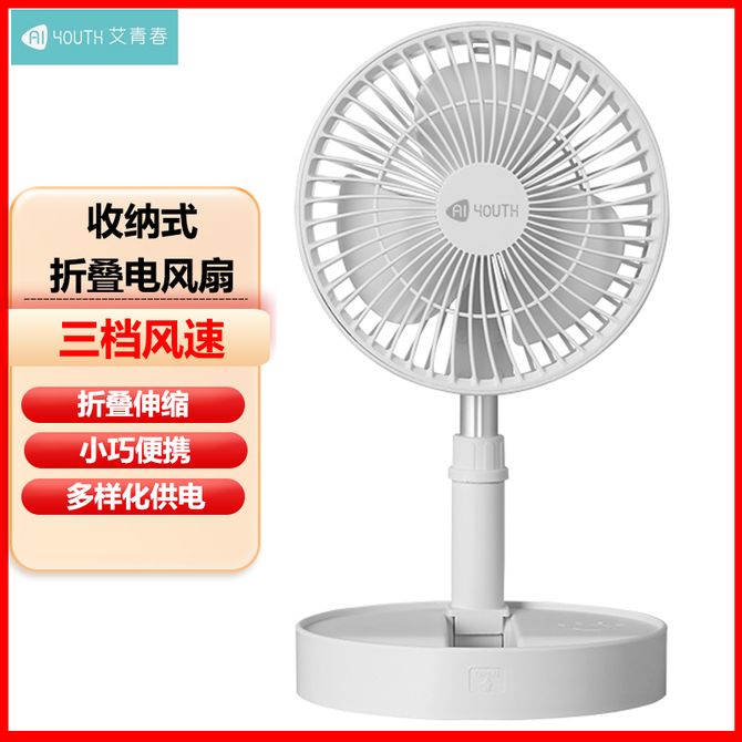 艾青春(AIYOUTH) 收纳式折叠电风扇学生宿舍便携风扇USB风扇办公室桌面风扇床头风扇