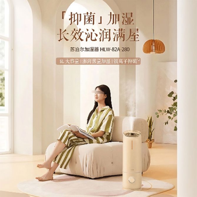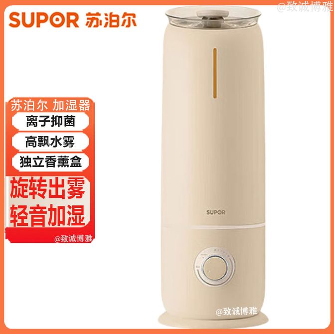 苏泊尔/Supor 加湿器8L大容量水箱透明水尺抗菌水箱源头抑菌低噪运行旋钮操作客厅卧室办公室加湿器