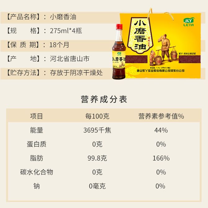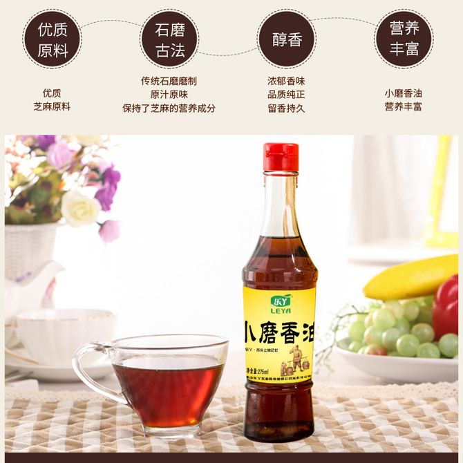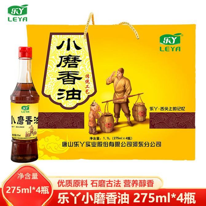 乐丫 小磨香油275ml*4瓶石磨磨制香味浓郁小磨香油营养丰富