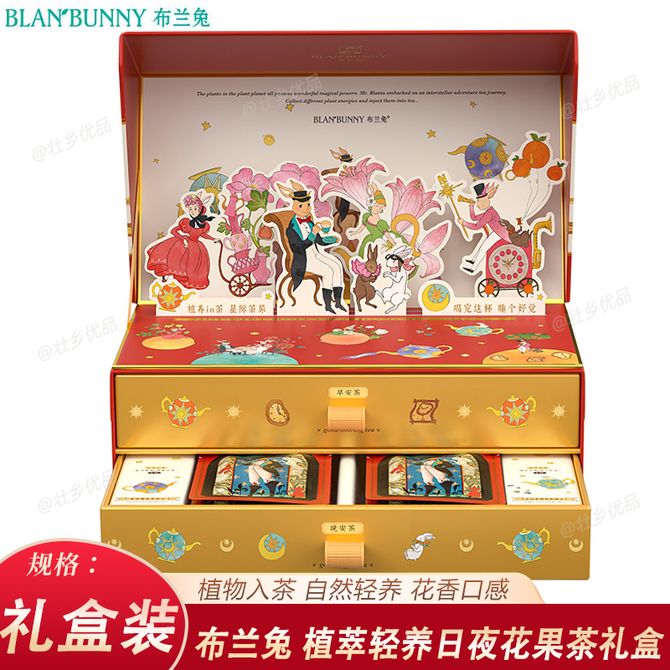 布兰兔/BLANBUNNY 植萃轻养日夜花果茶礼盒含趣味卡片多口味乌龙茶砖创意礼物