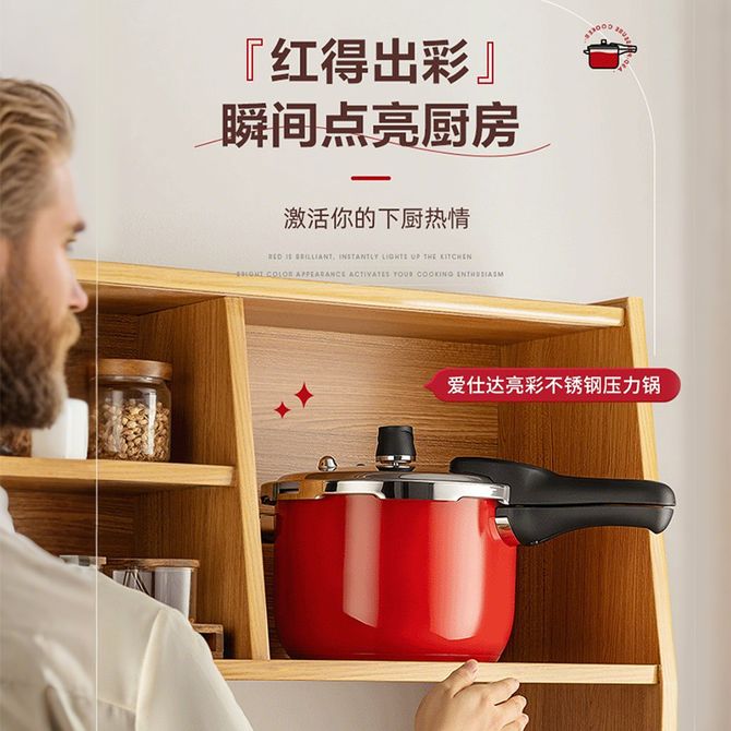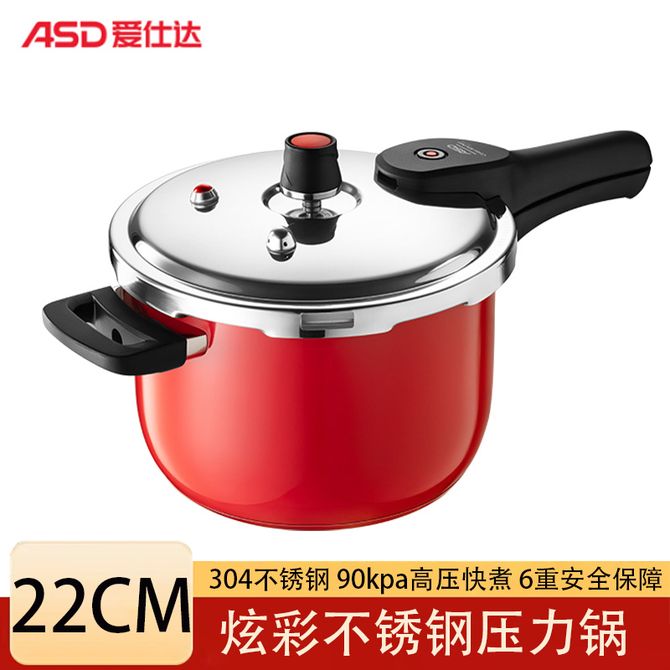 爱仕达/ASD 炫彩不锈钢压力锅 22CM家用高压锅快煮锅-红色