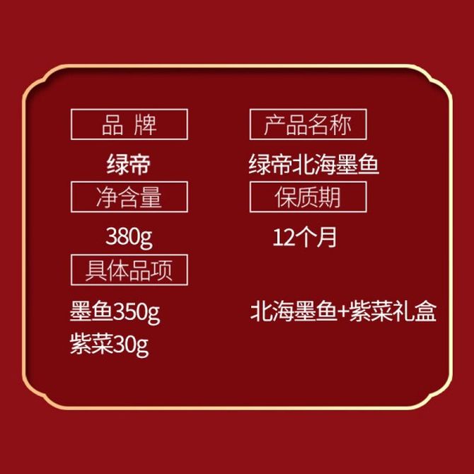绿帝 北海墨鱼+紫菜礼盒380g 北海墨鱼+紫菜礼盒380g 兑换价格 10800 里程 会员卡别 终身白金卡 白金卡 金卡 银卡 普通卡 儿童卡 服务 由 隆泰行食品专营店 发货并提供售后 规格: 礼盒 购买数量: 件 库存件 配送地址: 立即购买 加入购物车 成功添加到购物车 关闭 购物车共有 种商品 总金额为: