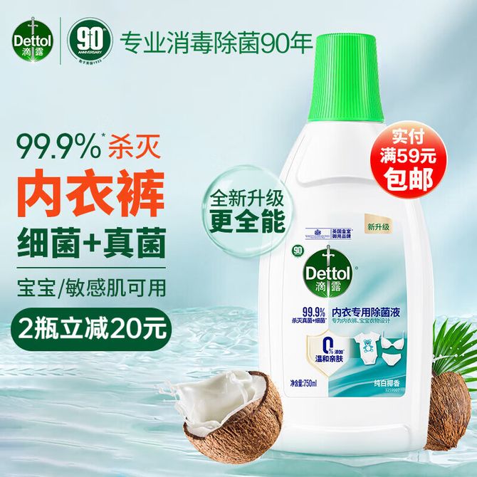 滴露/Dettol 椰香内衣专用除菌洗衣液750ml 高效灭真菌 内裤消毒 儿童适用 配置:椰香内衣专用除菌洗衣液750ml 兑换价格 2100 里程 会员卡别 终身白金卡 白金卡 金卡 银卡 普通卡 儿童卡 服务 由 广西北部湾网络科技有限公司 发货并提供售后 净含量: 750ml 清洁剂容量: 其他容量 购买数量: 件 库存件 配送地址: 立即购买 加入购物车 成功添加到购物车 关闭 购物车共有 种商品 总金额为: