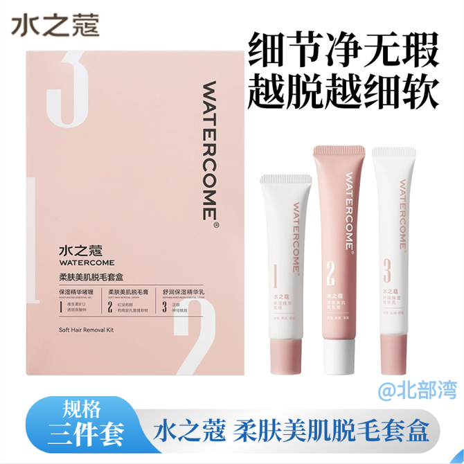水之蔻/watercome 柔肤美肌脱毛套盒精华啫喱15g脱毛膏20g精华乳10g三件套温和脱毛男女士
