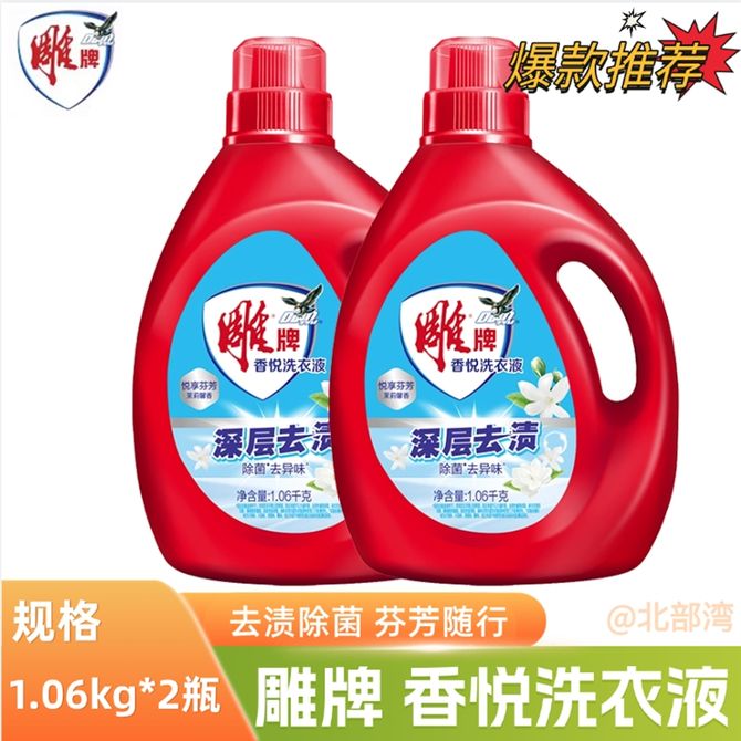 雕牌 香悦系列洗衣液 2瓶*1.06kg 大瓶装低泡不伤衣物不伤手 深层去渍除菌 深层去渍,除菌祛异味 兑换价格 1700 里程 会员卡别 终身白金卡 白金卡 金卡 银卡 普通卡 儿童卡 服务 由 广西北部湾网络科技有限公司 发货并提供售后 净含量: 其他容量 清洁剂容量: 其他容量 购买数量: 件 库存件 配送地址: 立即购买 加入购物车 成功添加到购物车 关闭 购物车共有 种商品 总金额为: 组合销售 产品介绍 产品规格 售后服务 产品咨询 发现好货 蓝月亮 深层洁净洗衣液4斤 1kgx1瓶+500gx2补充装 薰衣草香 强效去渍 1500 里程 威露士/Walch La有氧洗洗衣液套装 4斤松木清香(瓶1L+袋500ml*2) 除菌除螨 1900 里程 威露士 洗衣液除菌机洗手洗家用除螨去污1L*1瓶 1500 里程 蓝月亮 亮白增艳洗衣液2斤 1kg*1瓶 1100 里程 蓝月亮 护理洗衣液去污去渍 保护衣物纤维和原色 薰衣草香 1kg*2瓶 持久留香 速溶易漂 温和配方 1500 里程