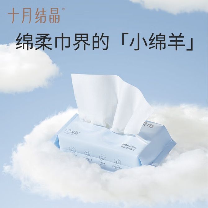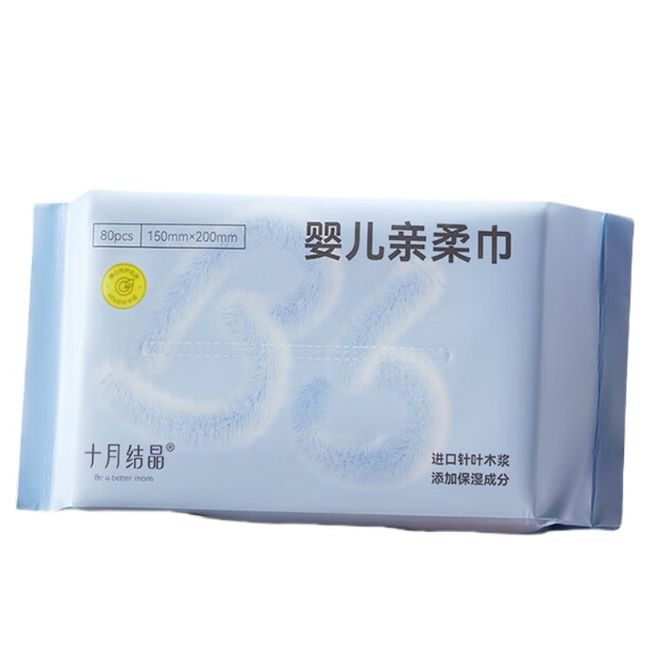 十月结晶 婴儿绵柔巾宝宝手口专用柔润亲肤干湿乳霜抽纸加厚洗脸巾 超柔保湿【80抽】单包