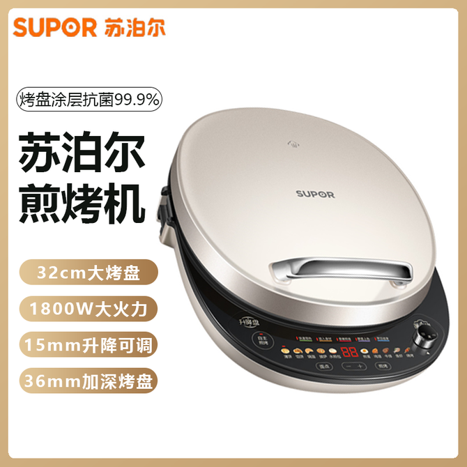 组合销售 产品介绍 产品规格 售后服务 产品咨询 发现好货 苏泊尔(SUPOR)电饼铛家用 双面加热煎饼铛煎烤机三明治机烙饼锅早餐机25mm加深烤盘火力可调JD31A847A 6500 里程 苏泊尔(SUPOR) 电饼铛 自动煎烤机 电火锅多功能 加大加深60mm双加热烙饼 锅面煎饼电饼档 两档火力 JT30A818 5700 里程 苏泊尔(SUPOR)电饼铛家用双面加热电饼档煎烤机烙饼机双面悬浮加热早餐机三明治机JJ30A648-Q 5400 里程 美的(Midea)电饼铛家用智能双面加热煎烤机烙饼机蛋饼机薄饼机煎饼烙饼锅JHN30F 4800 里程 小熊/Bear 八角电烤盘家用无烟电烤炉多功能烤涮电火锅烤肉锅 6500 里程