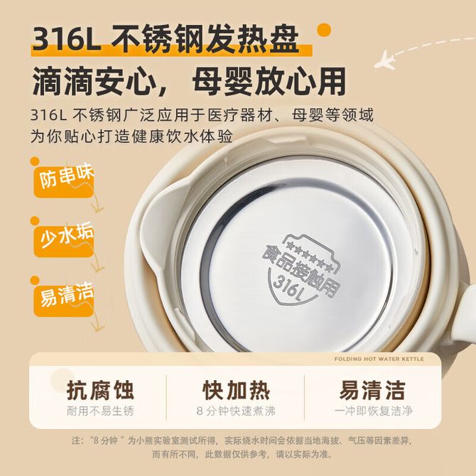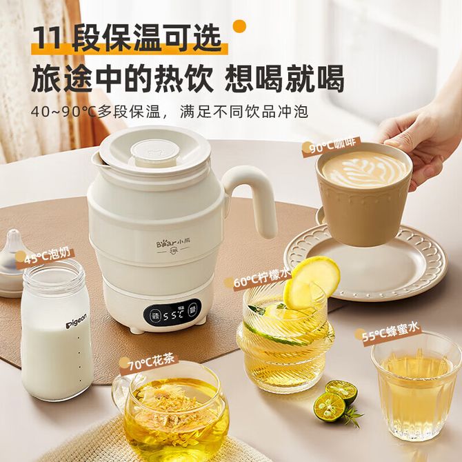 小熊/Bear 电水壶电水杯折叠水壶 烧水杯 便携式折叠烧水壶迷你出差旅行恒温水壶多段保温热水壶电热水壶 折叠杯壶更便携,316L不锈钢发热盘,烧水·除氯·恒温,食品接触用硅胶,多段保温可选 兑换价格 6500 里程 会员卡别 终身白金卡 白金卡 金卡 银卡 普通卡 儿童卡 服务 由 广西自贸区京通桂达科技发展有限公司 发货并提供售后 颜色: 其他 购买数量: 件 库存件 配送地址: 立即购买 加入购物车 成功添加到购物车 关闭 购物车共有 种商品 总金额为: 组合销售 产品介绍 产品规格 售后服务 产品咨询 发现好货 苏泊尔(SUPOR)电水壶 1.7L 不锈钢/YL SW-17S13A 5700 里程 志高/Chigo 电水壶烧水壶1.8L大容量电热水壶双层防烫自动断电家用烧水开水壶不锈钢 电水壶 DC-A18F 1900 里程 美的/Midea 电热水壶家用大容量烧水壶热水壶双层防烫电水壶304不锈钢内胆自动断电分离式拔盖 MK-SH15X1-102 3000 里程 小熊/Bear 电水壶家用烧水壶 不锈钢自动断电恒温热水壶保温一体电热水壶1.5L容量 3500 里程 小熊/Bear 烧水壶电水壶热水壶电热水壶开水壶304不锈钢内胆双层防烫1.5L大容量ZDH-Q15U8 3000 里程