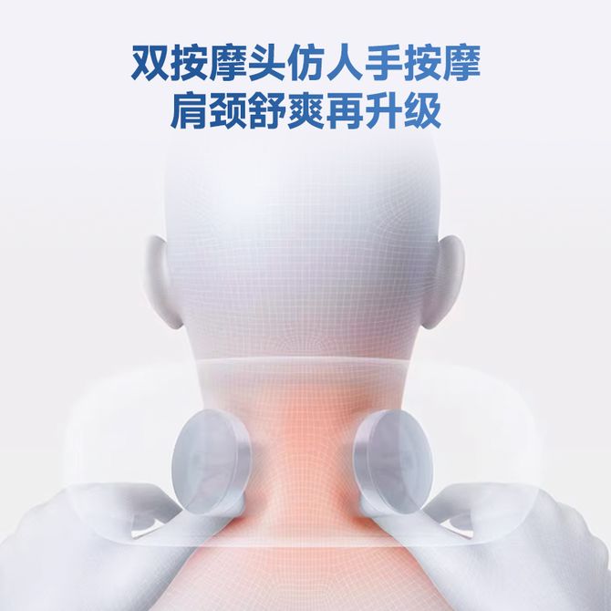 双按摩头设计,U型护颈设计,热敷灯光提示。