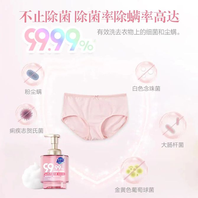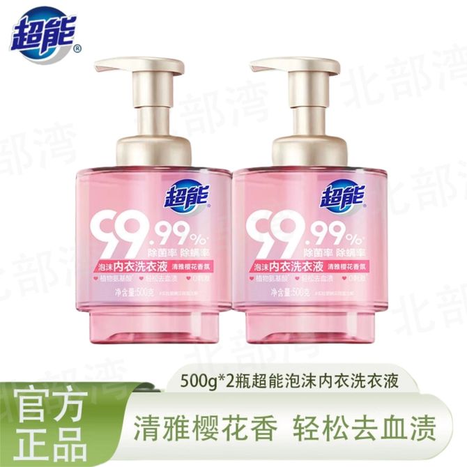 配置:超能泡沫内衣洗衣液500g*2瓶,洁净私密响护 超能一步到位
