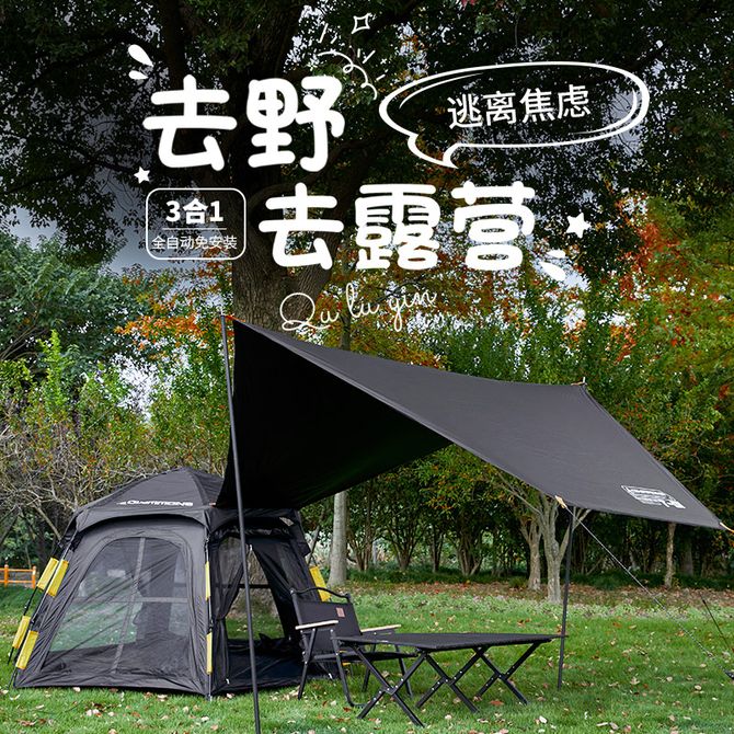 黑胶六角天幕一体自开帐篷  T-06(大号)防晒遮光