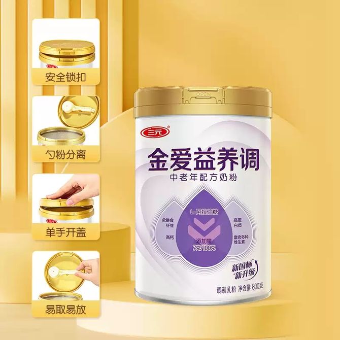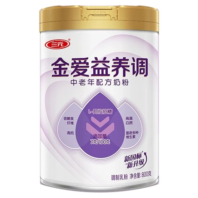 三元(SAN YUAN) 金爱益养调中老年配方奶粉罐装800克1罐 关爱健康 营养配方 兑换价格 7400 里程 会员卡别 终身白金卡 白金卡 金卡 银卡 普通卡 儿童卡 服务 由 致良优选 发货并提供售后 规格: 组合 购买数量: 件 库存件 配送地址: 立即购买 加入购物车 成功添加到购物车 关闭 购物车共有 种商品 总金额为: 组合销售 产品介绍 产品规格 售后服务 产品咨询 发现好货 蒙牛 铂金装 中老年奶粉400g 益生菌高钙富硒成人奶粉 便捷条装 1400 里程 蒙牛 铂金装中老年益生菌高钙富硒成人奶粉800g罐装0蔗糖营养送礼 2800 里程 蒙牛 中老年高钙低脂成人奶粉800g罐装 2400 里程 蒙牛 悠瑞 金装中老年奶粉400g 高钙富硒成人奶粉 营养冲饮 1400 里程 蒙牛 中老年低脂高钙高纤奶粉800g/罐 2500 里程