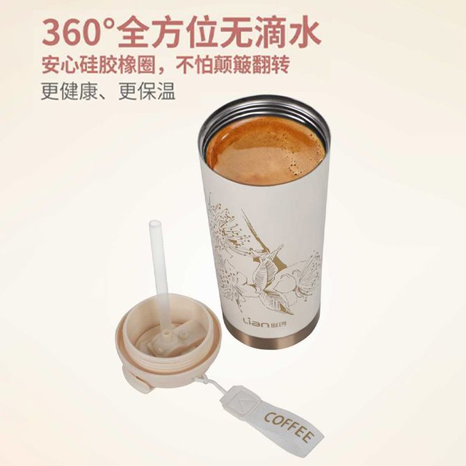 联创/Lian 慢酝·咖啡杯500ML 316不锈钢食品接触用安心硅胶橡圈不怕颠羽转