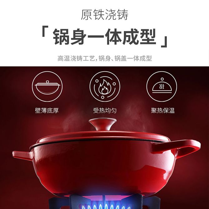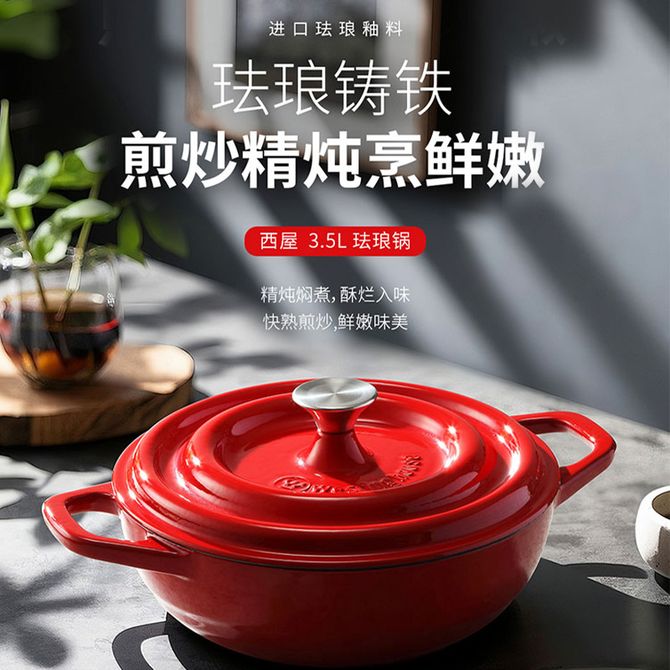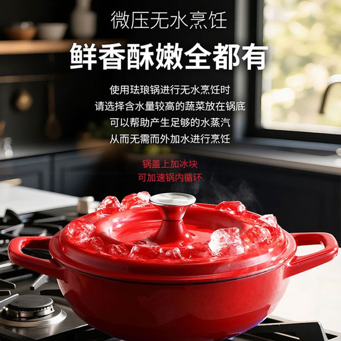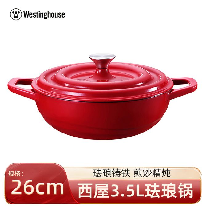 西屋/Westinghouse 珐琅锅26CM珐琅铸铁煎炒精炖烹鲜嫩跑道式锅盖蒸汽循环锁鲜美