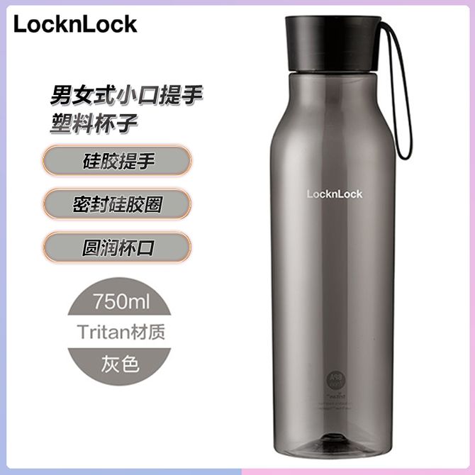 乐扣乐扣 Tritan提手塑料杯750ML容量便携男女式小口提手杯子 灰色
