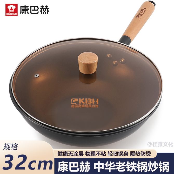 康巴赫 中华老铁锅32cm加厚锅壁无涂层畅快颠炒家用中式炒菜锅