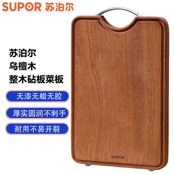 苏泊尔(SUPOR) 乌檀木整木砧板 正反可用生熟分离菜板-新老款随机发