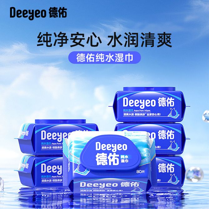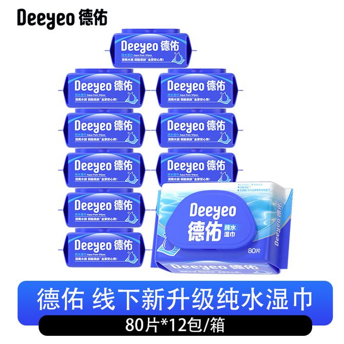 德佑/Deeyeo 新升级纯水湿巾80片*12包/箱 湿巾纯水湿巾水润清爽纯净安心柔润舒适