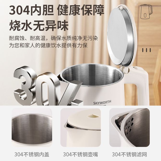创维 星闪提示灯 304食品级不锈钢有缝内胆/无缝内胆 电热水壶烧水壶S221 1、1.7L超大容量 2、1500W急速加热 3、星闪提示灯 4、304食品级不锈钢有缝内胆/无缝内胆 兑换价格 2300 里程 会员卡别 终身白金卡 白金卡 金卡 银卡 普通卡 儿童卡 服务 由 九樱互动家电专营店 发货并提供售后 颜色: 白色 购买数量: 件 库存件 配送地址: 立即购买 加入购物车 成功添加到购物车 关闭 购物车共有 种商品 总金额为: